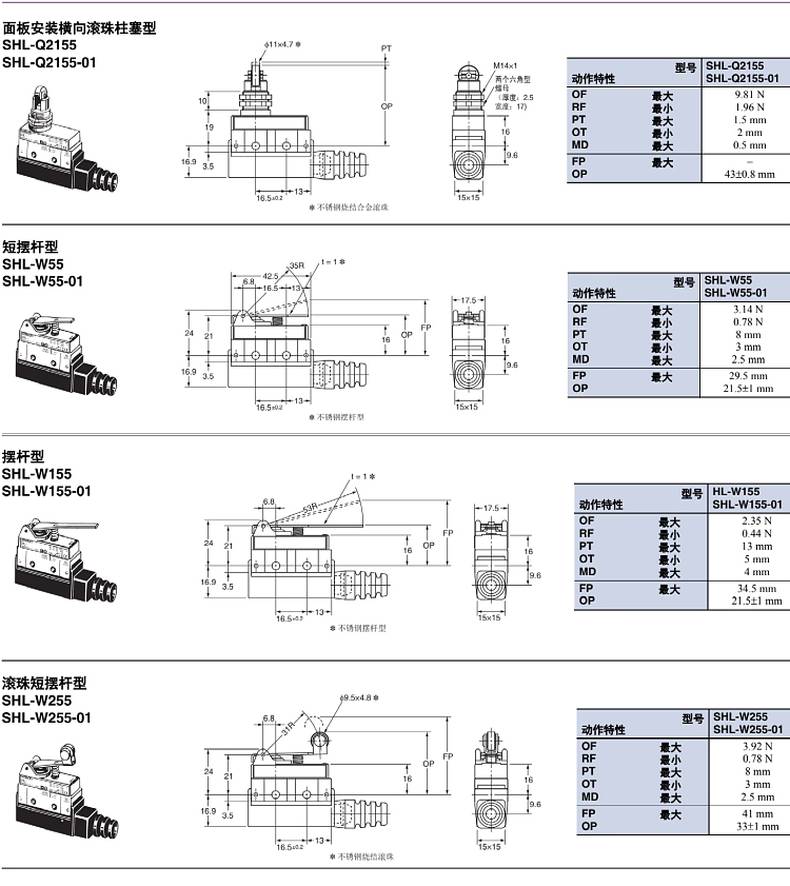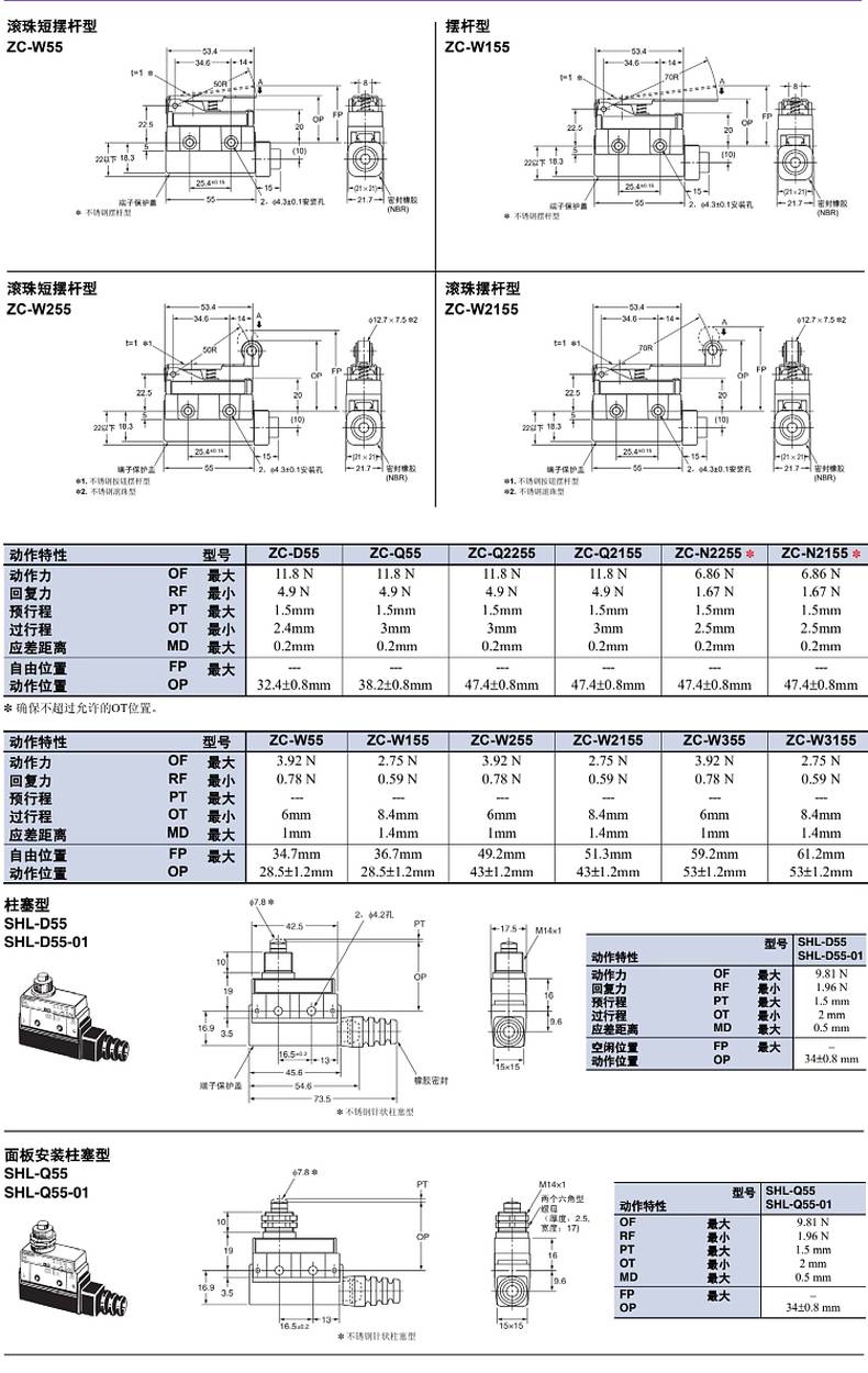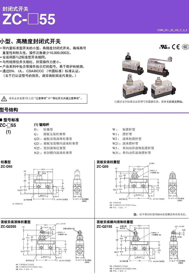 欧姆龙 封闭式开关 限位开关 ZC-D/Q/N22/Q22/W21/N21/Q21/W3155